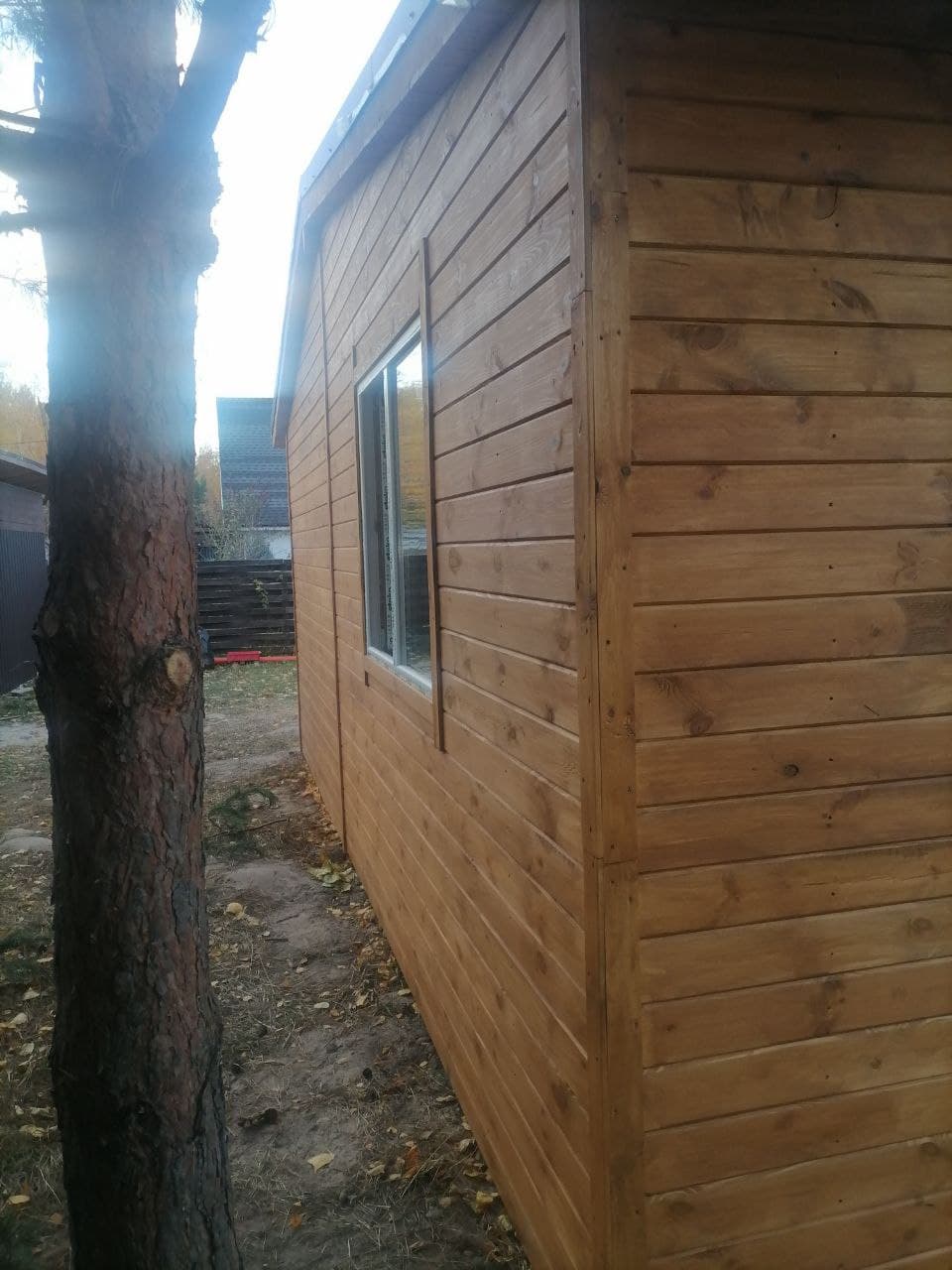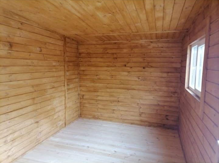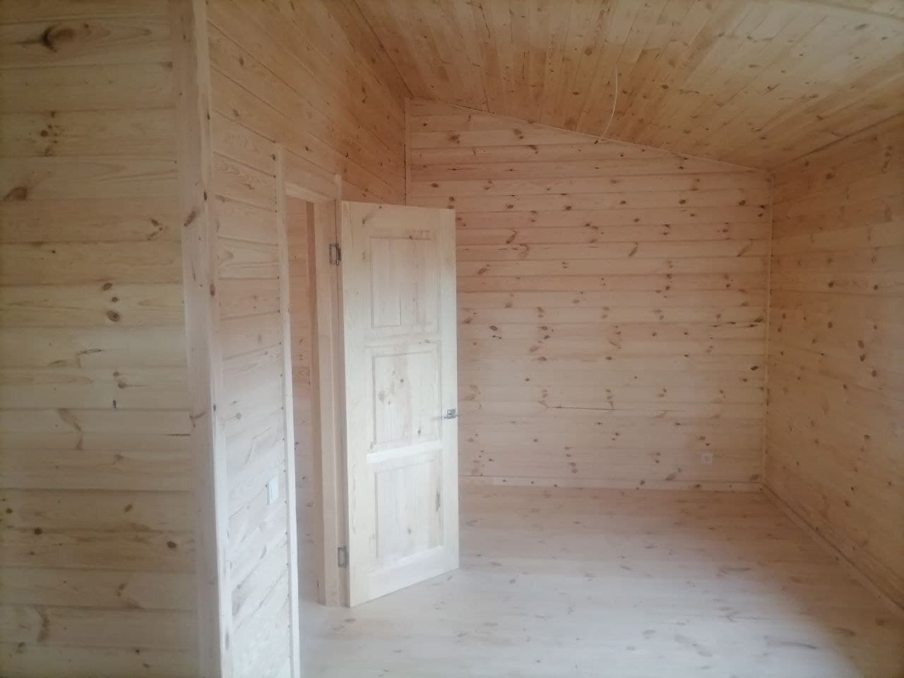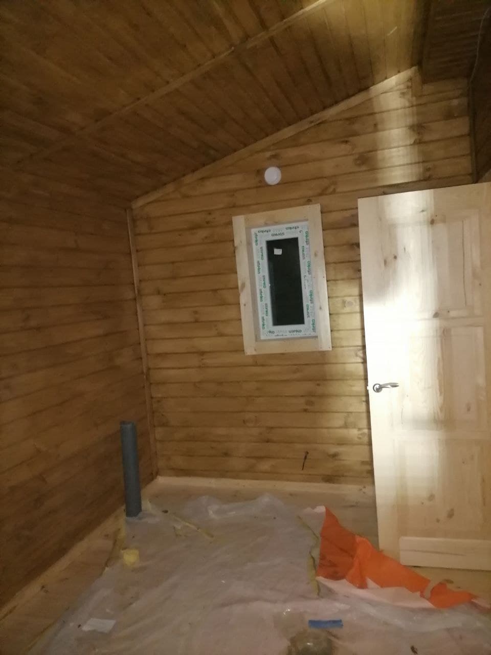 Утеплювач 150 мм закладається в готовий каркас, зовнішній фасад обшивається вітро-гідро мембраною та фальшбрусом 20 мм, внутрішне оздоблення також фальшбрус.